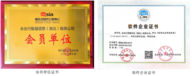 近日,永业行成员机构永业行智慧信息(湖北)有限公司(以下简称智能公司)正式获批成为“湖北省软件行业协会”会员单位,并获得国家“双软认证”。